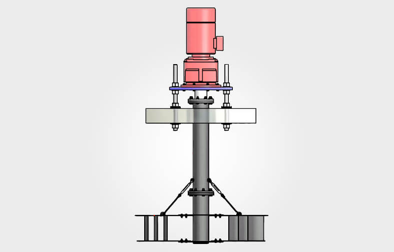 – Base de acionamento: A base de acionamento é executada de maneira a fixar o conjunto da motorização e possui parafusos de regulagem para ajuste preciso da submergência do rotor no tanque de aeração.