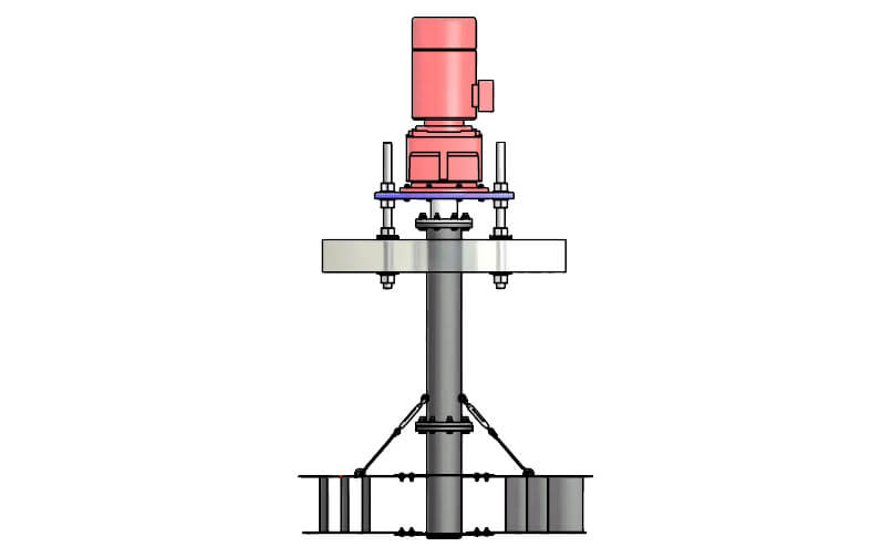 – Meia luva de acoplamento e tubo de torque: Tanto a meia luva quanto o tubo de torque, além de transmitirem o movimento de rotação ao rotor, são dimensionados para resistirem aos esforços axial e radial desenvolvidos durante a operação do aerador. A meia luva e o tubo de torque são fabricados em aço com revestimento apropriado para resistir à agressividade do meio.