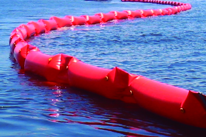 Esta barreira é composta por lances interconectáveis e insuflados por sopradores de alta vazão, suficientes para o suprimento de ar mesmo em desconexões de mangueiras ou até pequenos rasgos acidentais no tecido da lona.