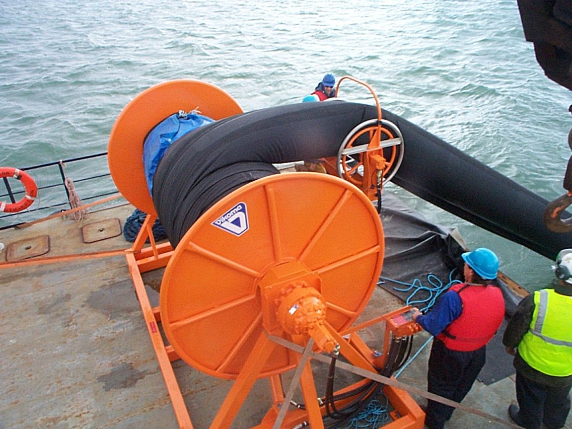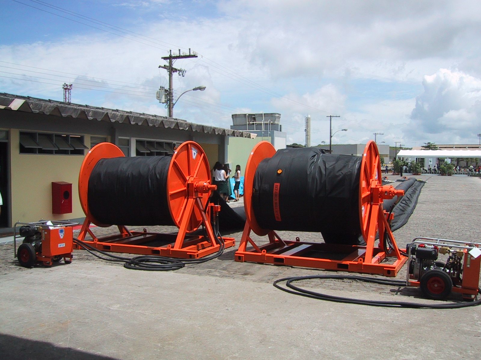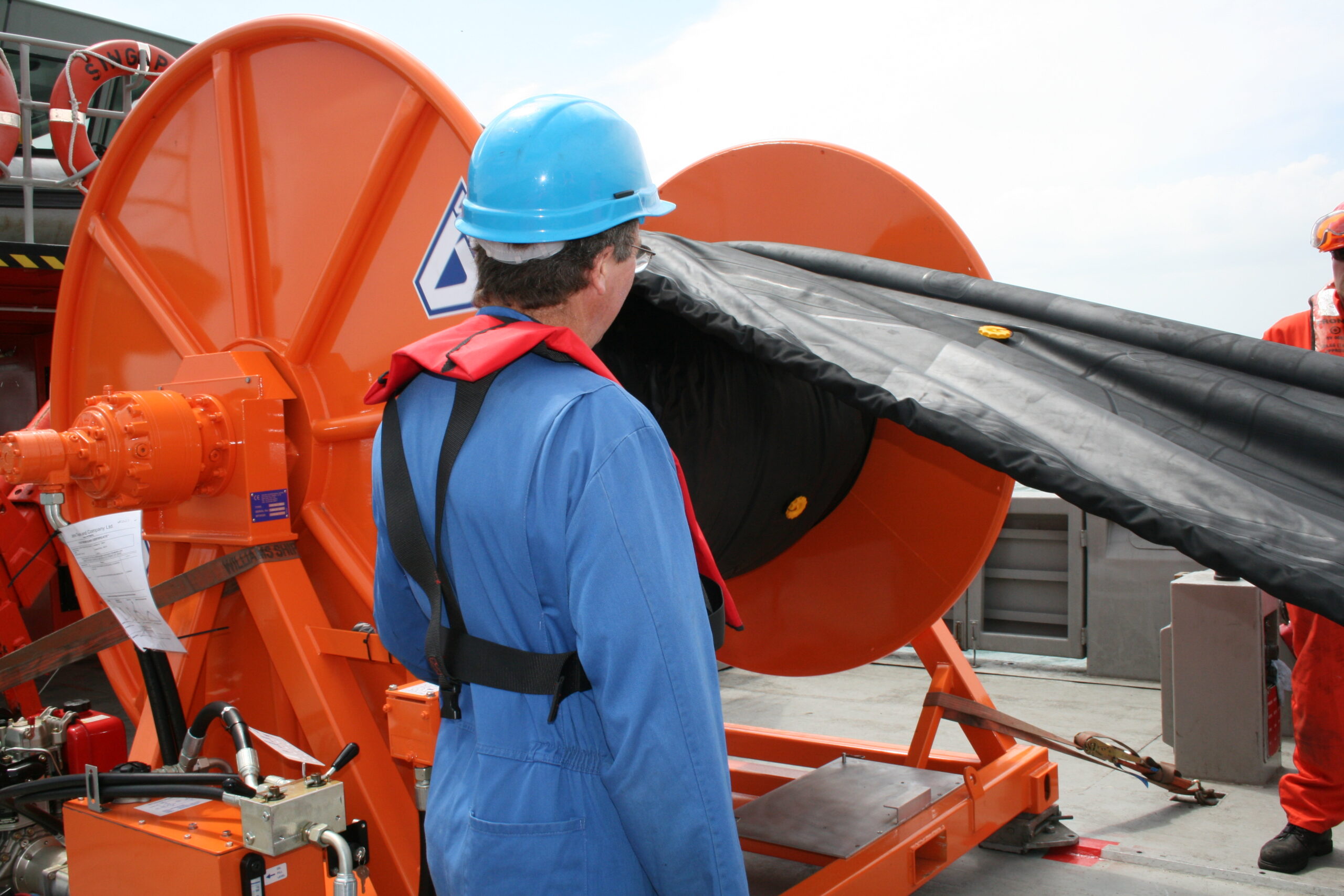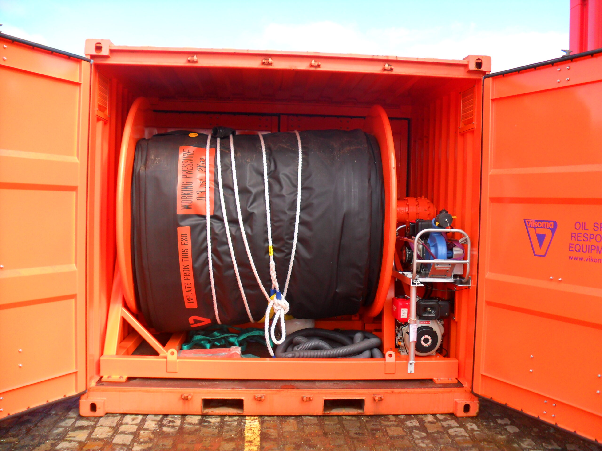 O modelo da barreira de contenção Super Hi Sprint é feita de neoprene e conta com um sistema de insuflamento incorporado ao carretel, tornando a operação mais rápida.