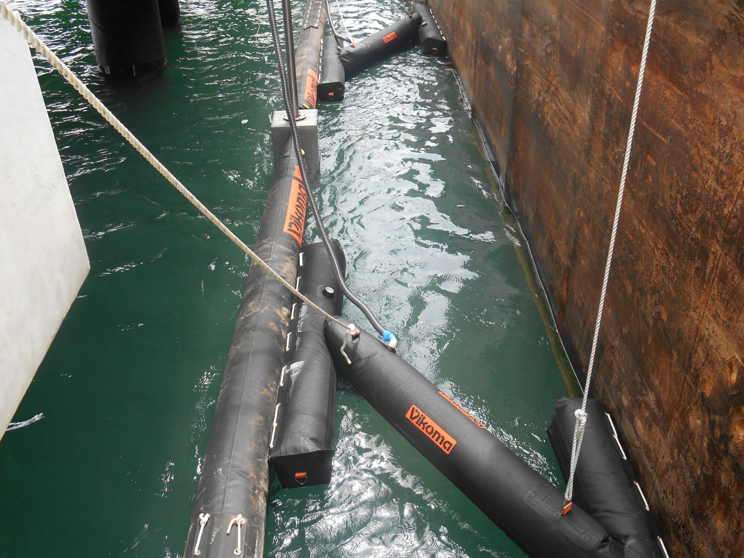 A barreira de contenção VikoSeal é um sistema bastante eficaz para evitar o espalhamento de óleo derramado durante operações de transferência de combustível, tanto em transbordos em áreas portuárias (navio – cais) quanto em ship-to-ship (navio – navio).