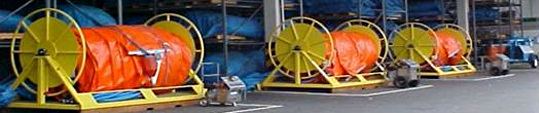 A Aquamec oferece carretéis para barreiras de contenção com estrutura de aço carbono com pintura marítima, dotados de dispositivos para movimentação por empilhadeiras, quando vazios, e por içamento, quando estiverem com barreiras de contenção. Possuem unidade de força hidráulica acoplada, compondo um conjunto único, robusto e seguro, e com acessórios para insuflamento, soprador de ar e mangueira com adaptador de engate rápido para as válvulas, formando um sistema ágil e com grande praticidade operacional.