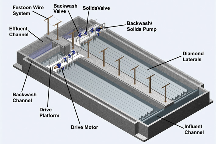 O AquaDiamond é um Filtro de mídia de tecido com OptiFiber que combina duas tecnologias comprovadas: ponte rolante e filtros de mídia de tecido. O resultado é duas a três vezes a capacidade de vazão de um removedor de ponte rolante com a mesma área de implantação, tornando-o ideal para retrofits de filtro de areia.Vantagens: