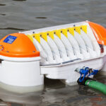 Um sistema completo Komara Mini consiste em uma cabeça de coletor Komara, powerpack hidráulico, bomba flutuante e kit de