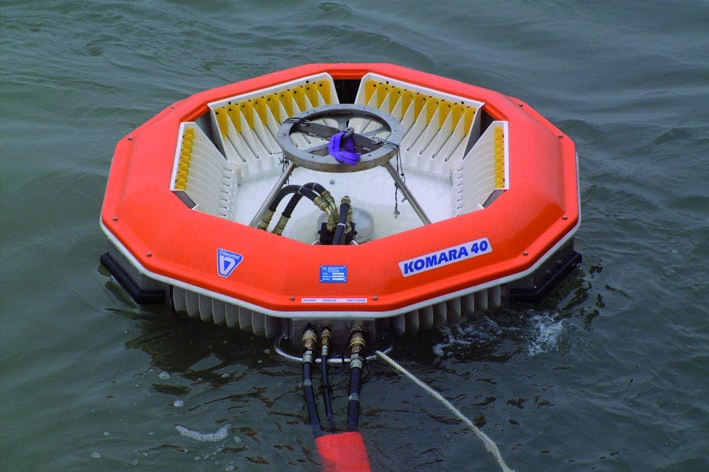O recolhedor de óleo Komara é composto por discos oleofílicos e concebido para a recuperação de uma grande variedade de tipos de petróleo, como óleos leves, viscosos, emulsionados ou óleo cru.