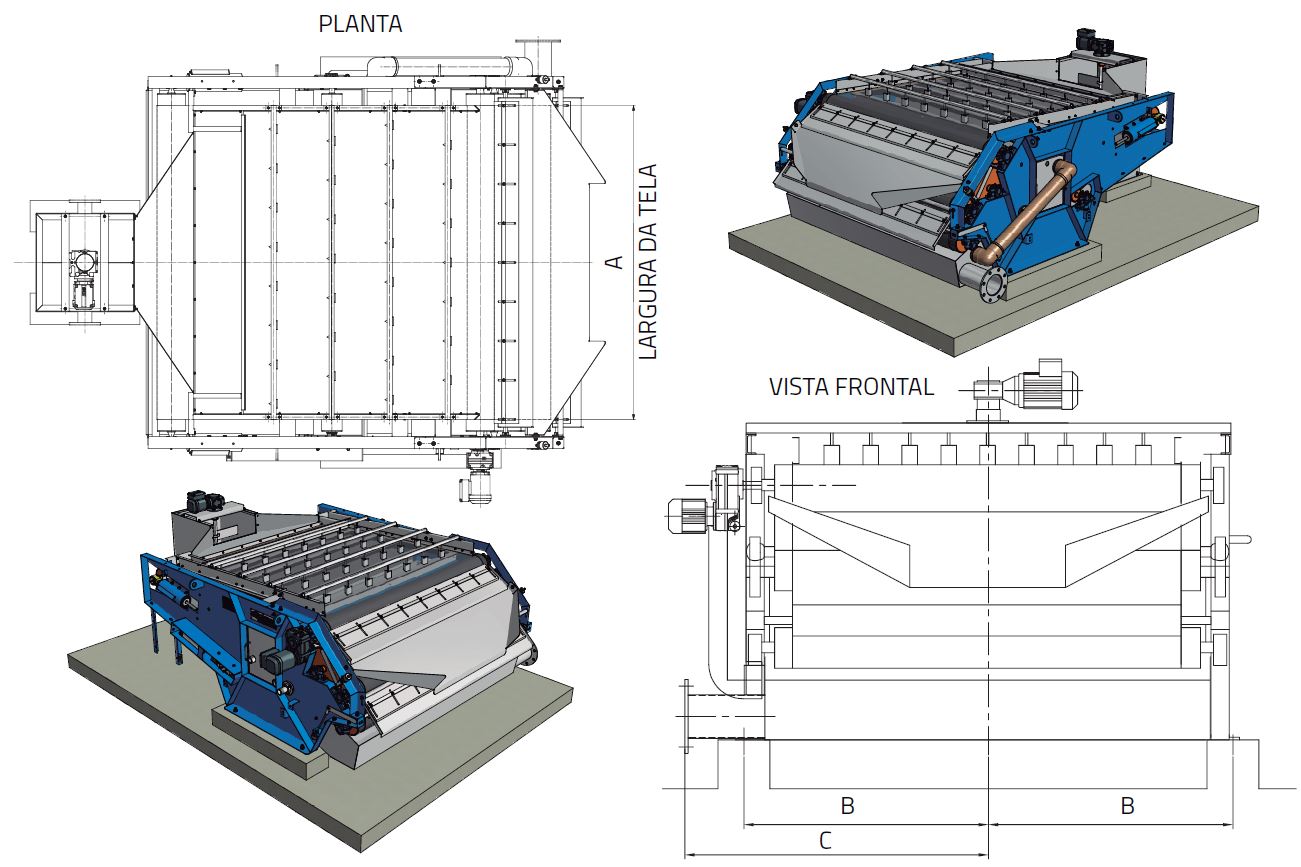 A mesa adensadora / desaguadora Filpress S1 é utilizada na etapa de desidratação de lodo, realizando o espessamento e preparação. O equipamento é projetado para espessar lodos provenientes de processo de tratamento de esgotos municipais ou industriais.