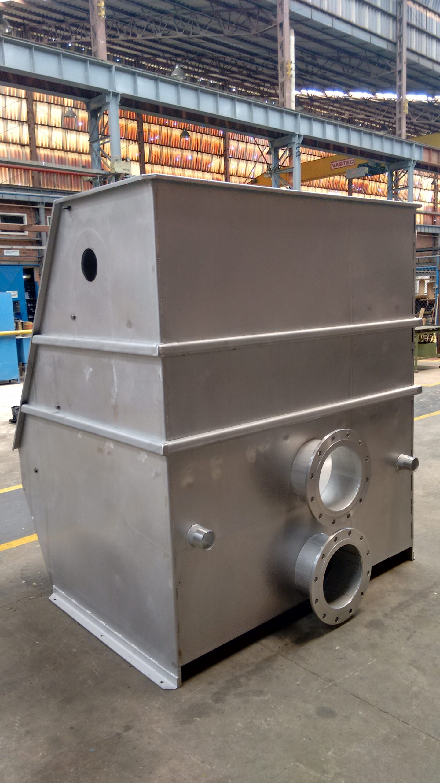 Distribuidor basculante: Constituído na opção básica, em chapa de aço carbono revestido com epoxi alcatrão da hulha, após jateamento ao metal quase branco das superfícies metálicas, ou nas opções alternativas em aço inoxidável ou em fibra de vidro. Tem a função de distribuir de uma forma mais homogênea o fluxo influente por sobre a tela.