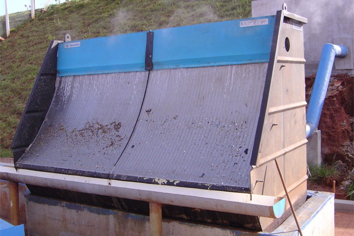 Painel de separação sólido-líquido: Responsável pelo gradeamento. É fabricado por fios de perfil triangular, em aço inoxidável AISI 304, fixados a uma estrutura longitudinal de perfis redondos também em aço inoxidável AISI 304. O perfil triangular é soldado por eletrofusão ao perfil longitudinal, no momento da formação do painel. O espaçamento entre os fios, dependendo da aplicação, pode variar de 0,25 a 2,5 mm.