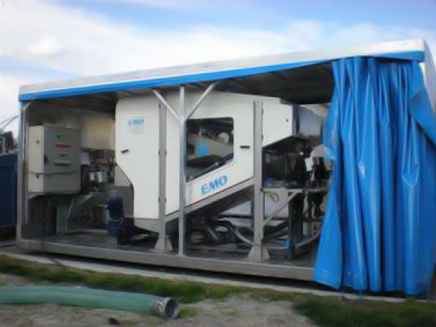 A unidade combinada de adensamento e desidratação de lodo foi projetada para desidratação contínua de lodos provenientes de pequenas estações de tratamento de efluentes municipais e industriais. Esta forma construtiva compacta de grande simplicidade operacional associa as funções de mesa adensadora, em conjunto com filtro prensa, ambas de conceito de telas desaguadoras por gravidade.