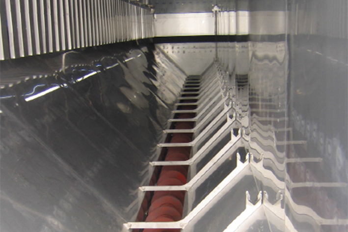 As plantas são projetadas em tamanhos fixos e padronizados. O canal de saída se estende ao longo de todo o comprimento do tanque. Isto resulta numa carga de descarga baixa com a vantagem de que a água não é descarregada para a seguinte fase de processamento.