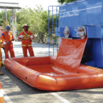 Sua montagem é rápida e fácil, é um tanque compacto e portátil usado principalmente para a contenção de líquidos que estejam vazando de outro recipiente ou de tombamento de caminhões-tanque. As câmaras laterais são infladas, criando zonas delimitadas para que o líquido seja contido para posterior transferência com segurança.
