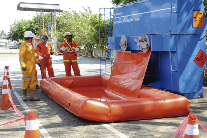 – Operações emergenciais em terra (onshore) que envolvam, principalmente, tombamento de caminhão-tanque – Lavagem de peças com resíduos oleosos – Contenção de líquido proveniente de vazamentos de bombonas, latões, etc
